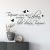 „Träume nicht dein Leben, lebe deinen Traum“ – diesen schönen Spruch gibt es jetzt als Wandsticker. Behalte den Spruch im Fokus und denke bei jedem Blick auf den Wandaufkleber darüber nach, was im Leben wirklich wichtig ist. Wir alle haben den Wunsch, mehr aus unserem Leben zu machen – unsere Hoffnungen, Träume und Ziele zu verwirklichen, anstatt uns gedankenlos in die Gesellschaft einzufügen und zu funktionieren. Dieser Wandaufkleber macht es dir leichter, deinen Träumen zu folgen und die Kontrolle über dein Leben zu übernehmen.