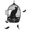 Vögel und Katzen, zwei Tiere, die sich normalerweise nicht verstehen. Wenn man beide als Haustiere hat, muss man gewisse Vorsichtsmassnahmen ergreifen. Der Wandtattoo-Vogelkäfig mit Katze ist der Beweis dafür, dass hier etwas nicht stimmt. Wie ist die Katze in den Käfig gekommen und wo ist der Vogel?