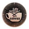 Wanduhr Alu-Dibond-Kupfereffekt - Life begins after coffee - Ø 28cm