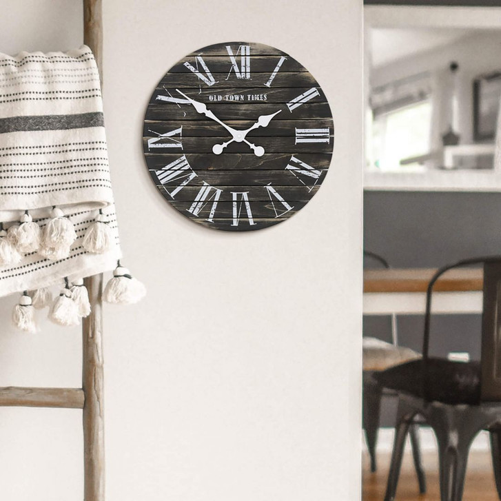 Mit der Wanduhr die Zeit im Blick behalten! Diese Uhr vereint Stil mit Funktion und kann in jedem Raum eingesetzt werden. Ob in der Küche, im Eingangs- oder Wohnbereich: Die schwarze Holzuhr ist ein echter Hingucker! Die kontrastierenden Zeiger mit römischen Ziffern in Weiss verleihen der Uhr zusätzlichen Schwung. Wer Naturprodukte mag, ist mit der Wanduhr aus echtem Holz bestens bedient. Die Retro-Uhr versprüht rustikalen Charme und passt wunderbar zu Vintage- und Landhausstilen.