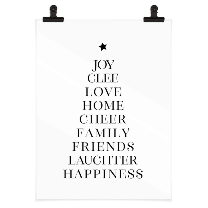 Verabschiede dich von eintönigen Wänden und lass deine Wände sprechen! Hol dir das Weihnachtsposter ins Haus und verzauber deine Gäste mit Schlagworten, die glücklich machen. Die Worte Liebe, Freunde, Familie, Zuhause und mehr lassen den Weihnachtsstress schnell vergessen. Dekoriere mit dem weihnachtlichen Motiv als Poster und bringe zusammen, was für diesen besonderen Anlass zusammengehört. Diese Dekorationsidee macht Weihnachten unvergesslich. Das Sprüche-Poster im Hochformat besticht durch ein stilvolles Design in hervorragender Bildqualität. Damit lässt sich jede Wand im Handumdrehen verschönern.